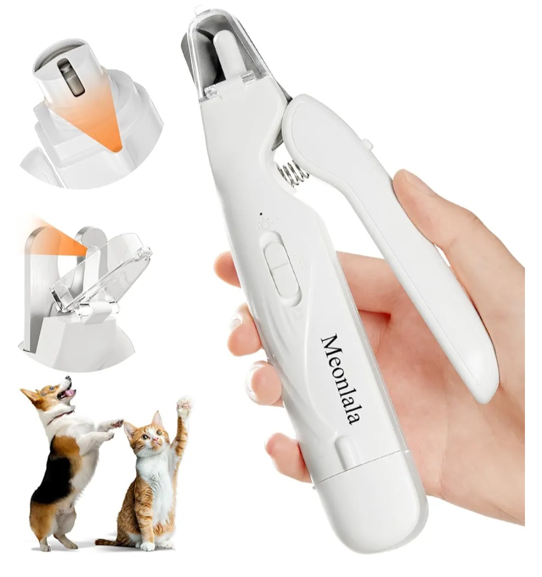 This 2-in-1 pet nail grooming tool combines precision nail clippers with a quiet electric nail grinder, featuring dual LED lights for clear visibility and safer trimming. Designed for easy at-home use, itβs perfect for dogs and cats of all sizes.