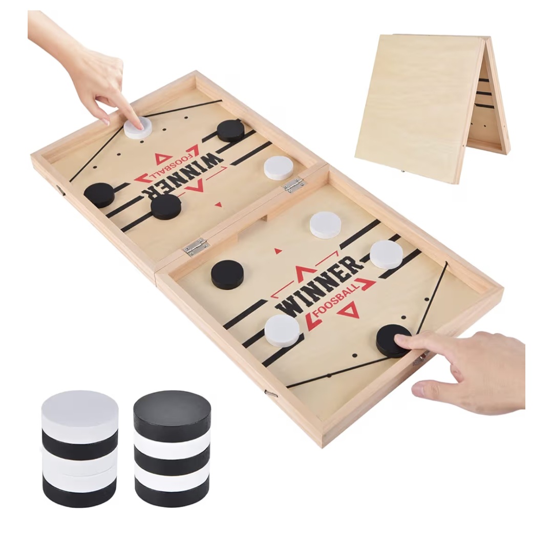 A fast-paced and exciting tabletop game made of wood, designed for competitive play between two players. Each player uses elastic bands to sling pucks to the opponent’s side, and the winner is the one who clears their side first. Ideal for adults, families, and social gatherings.