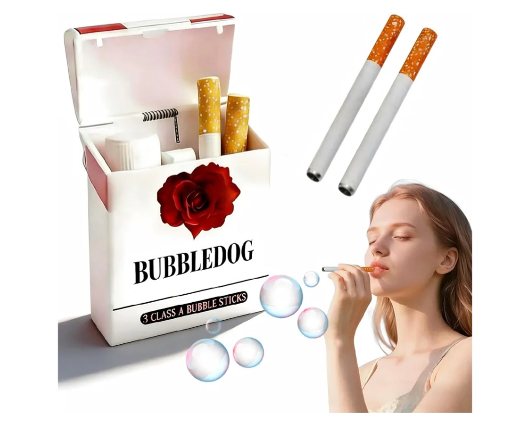 A bubble blower set with 2 wands and a refillable solution bottle, creatively designed to help relieve stress and promote relaxation. Perfect for use in the office and at parties.