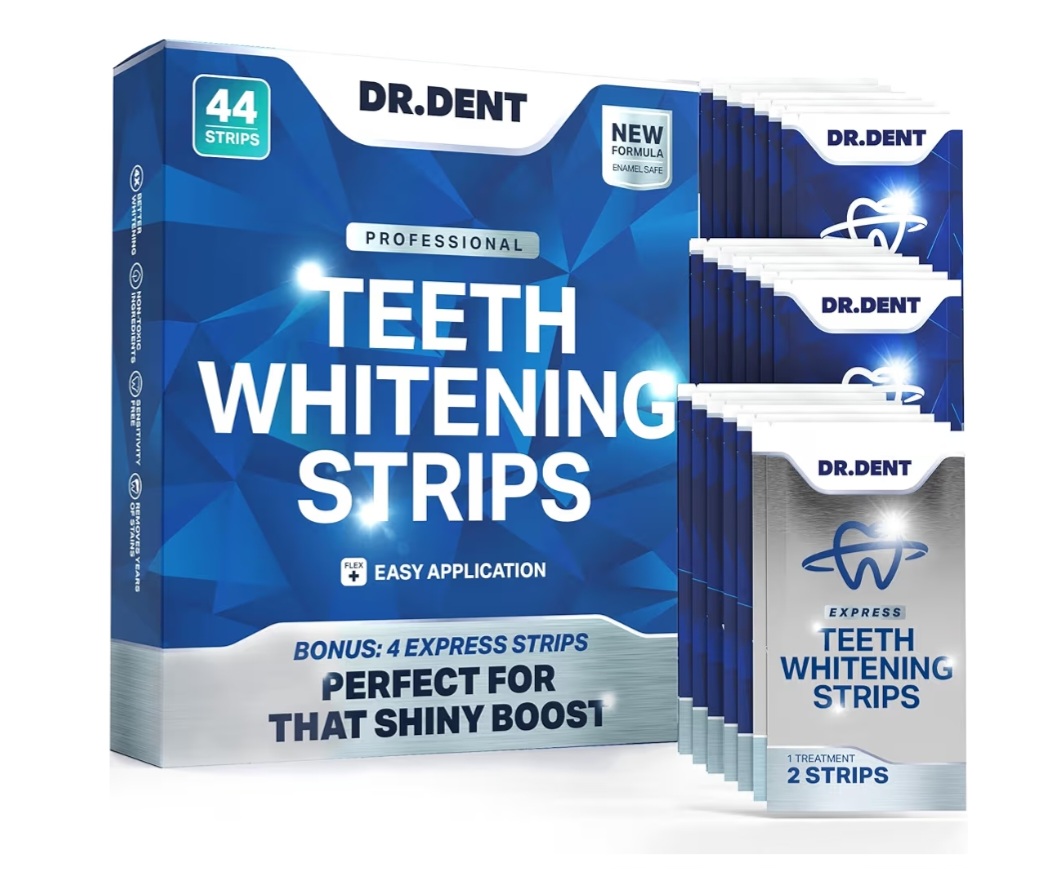 DR.DENT Professional Teeth Whitening Strips are at-home whitening strips designed to help you achieve a brighter, whiter smile by removing surface stains caused by coffee, tea, wine, and smoking.