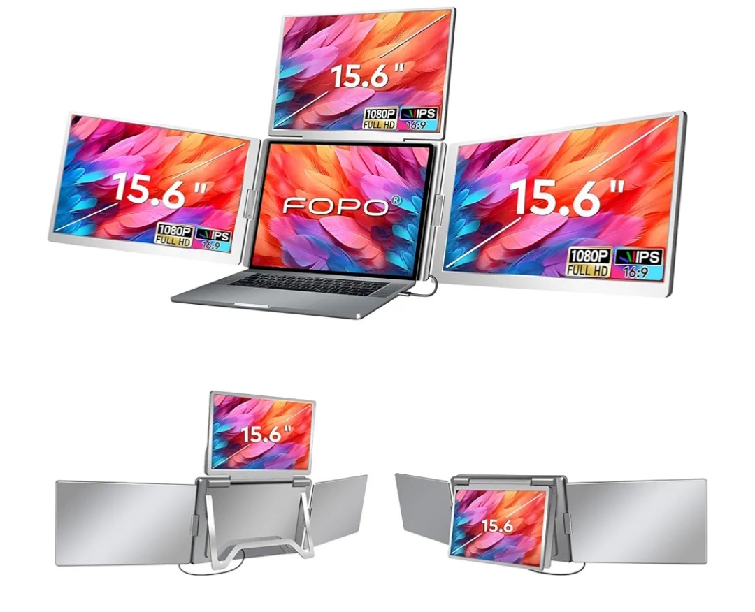 The FOPO 15.6″ Laptop Screen Extender is a professional solution to expand your laptop workspace, turning it into a 3- or 4-screen setup effortlessly. It uses just one cable for connection and features FHD 1080P IPS displays for crisp visuals, making it perfect for professionals, programmers, designers, traders, and remote workers. Compatible with Windows and Mac laptops from 13.6″ to 17.3″.