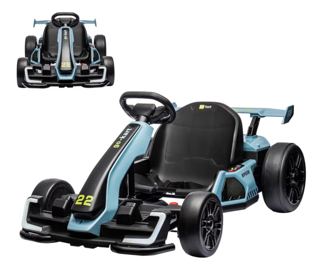 This is a 24-volt electric go-kart designed for children. It features dual motors that provide smooth drifting performance, an adjustable seat, LED lights, and entertainment functions. It offers a fun and safe outdoor driving experience for kids aged approximately 6 to 15 years.