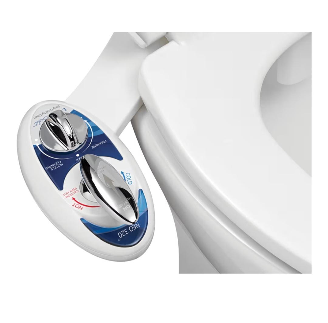 LUXE Bidet NEO 320 is a non-electric mechanical bidet attachment designed to fit most standard toilet seats. It connects to both hot and cold water supplies to provide a comfortable warm-water wash, improving personal hygiene without the need for electricity. It offers efficient, gentle, and customizable cleaning for everyday use.