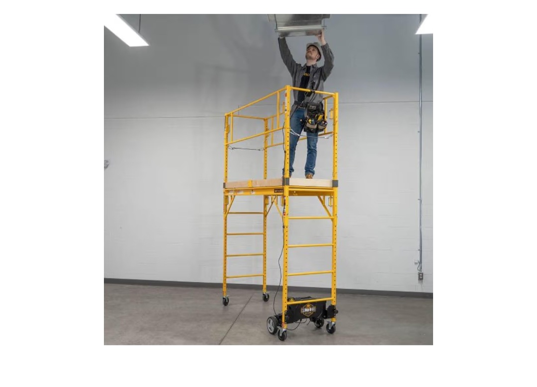 Motorized system for Baker scaffolds that allows easy movement of the scaffold while standing on it, without the need to step down.