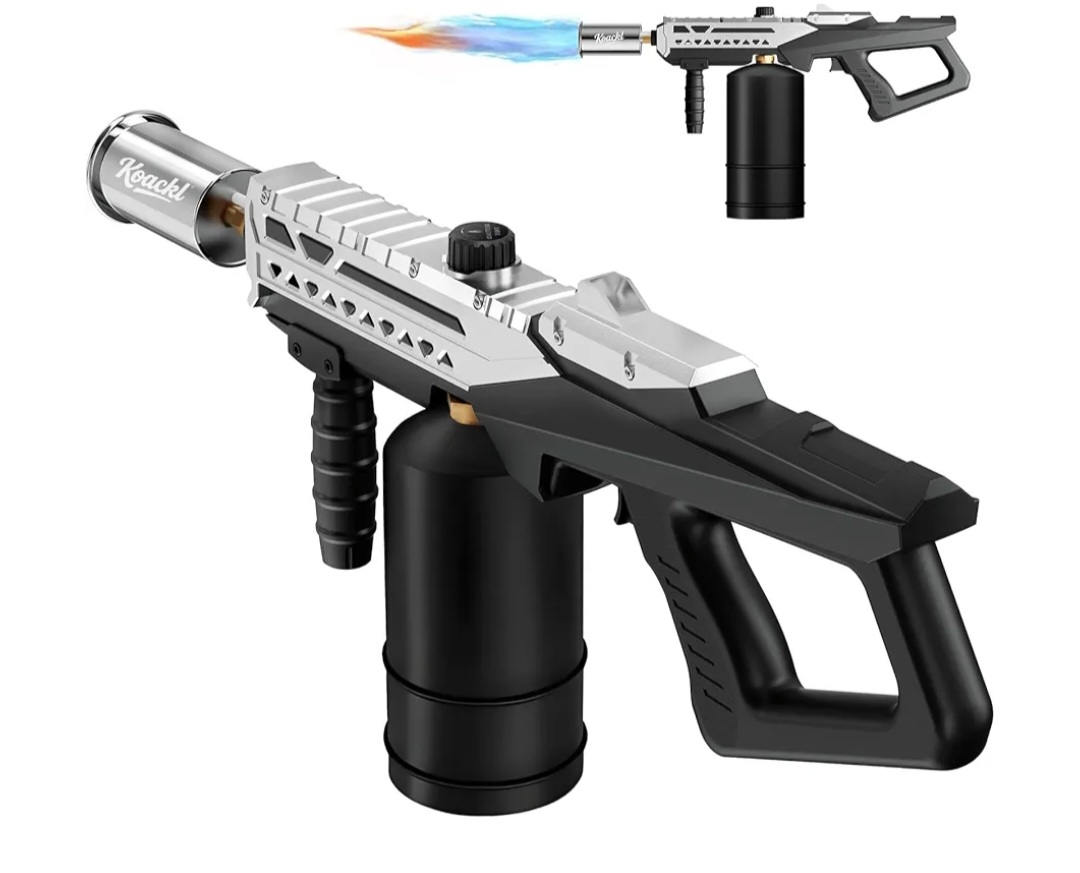 A gas-powered torch (usually propane) designed to produce a strong, high-temperature flame. It is used for various tasks such as light welding, surface heating, paint removal, charcoal lighting, camping use, and surface searing.