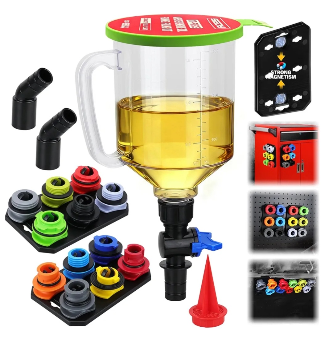 An 18-piece engine oil funnel kit designed for clean, spill-free oil filling, compatible with most vehicles.