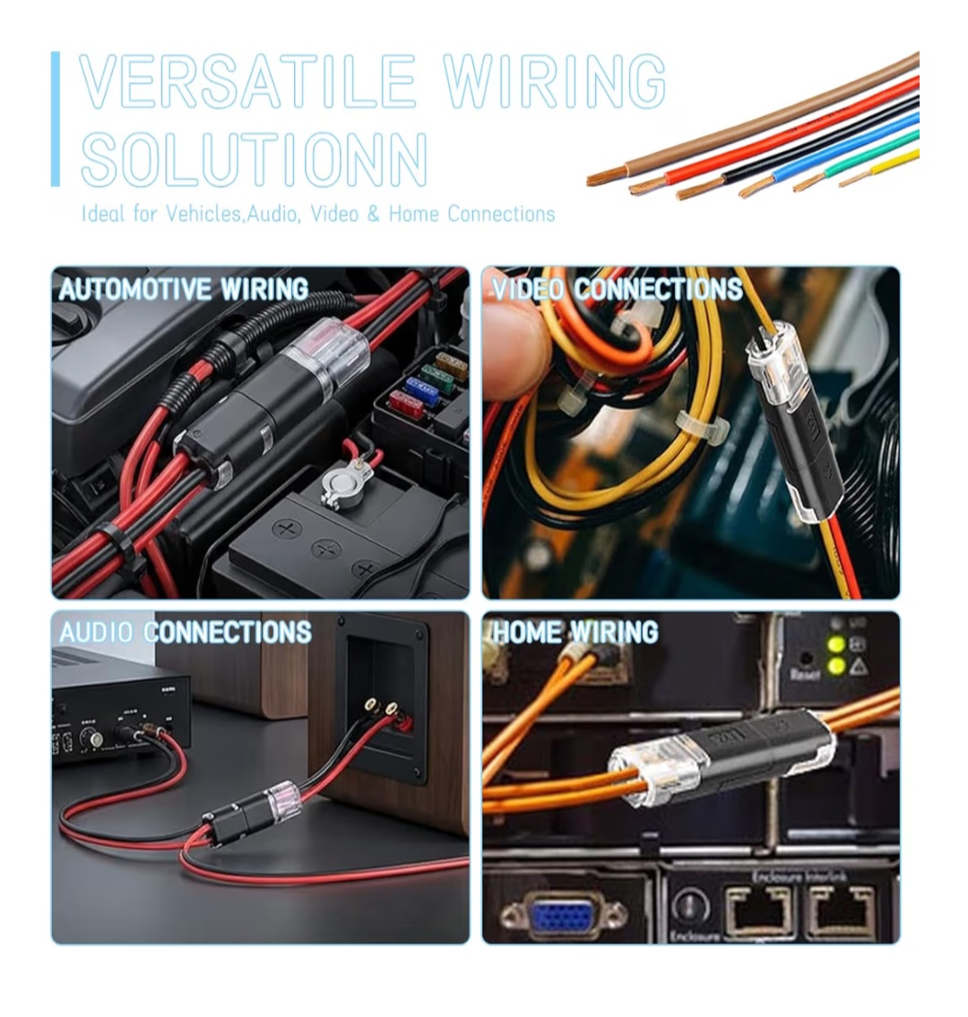 This set includes 100 pieces of 2-Pin double wire plug-in connectors with a smart locking buckle design, allowing fast and easy wire connections without soldering. Ideal for LED strip lights, DIY crafts, model kits, and low-voltage decorative projects, these snap-on connectors provide a stable and reliable electrical connection for both professionals and hobbyists.