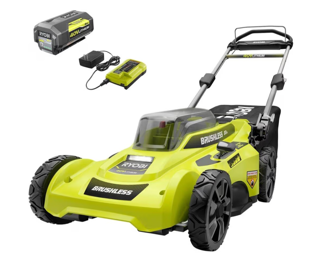 The Ryobi 20-inch cordless lawn mower runs on a powerful 40V battery and features Whisper-Quiet Technology that significantly reduces noise for a smooth and comfortable mowing experience. Designed for medium-sized lawns, it uses an advanced brushless motor that delivers consistent performance and clean cuts, with easy operation and compact storage.