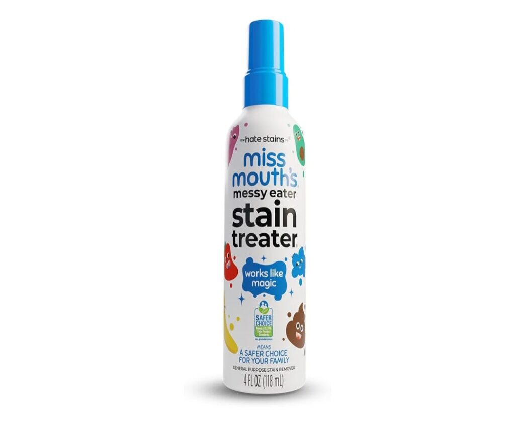 The Miss Mouth’s Messy Eater Stain Treater Spray is a 16oz instant stain remover, specially designed for parents to tackle baby and toddler stains with ease. Safe for daily use on clothes, fabrics, and even underwear, without the need for dry cleaning.