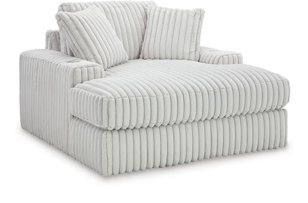 Relax in style with the Signature Design by Ashley Stupendous Oversized Chaise. Featuring plush, reversible cushions and a built-in USB charging port, this chaise offers the perfect blend of comfort and modern convenience. Its light gray upholstery complements any living space while providing a cozy retreat for lounging, reading, or streaming your favorite shows.