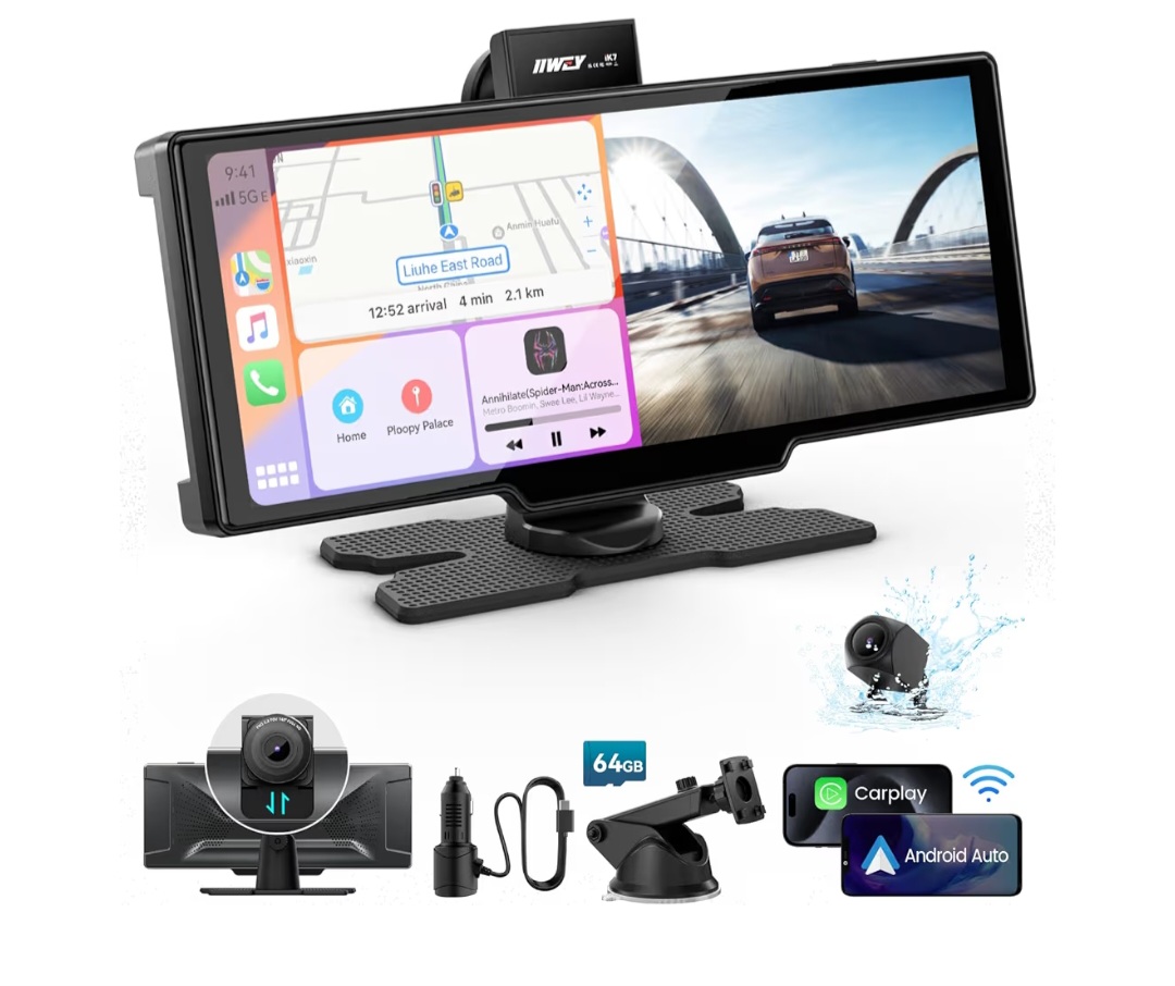 This portable car display screen adds wireless Apple CarPlay and Android Auto to any vehicle without complicated installation. Simply mount it on your dashboard or windshield and power it via the 12V car outlet.