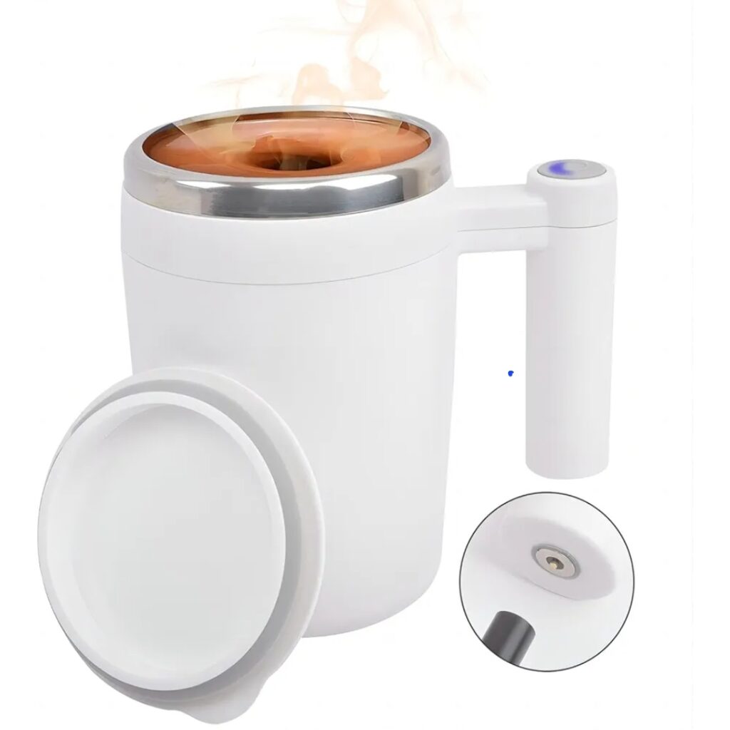 A practical and innovative mug with a built-in magnetic stirring mechanism activated by just one touch. Perfect for mixing coffee, tea, cocoa, milk, or protein drinks effortlessly without a spoon. Made of double-wall insulated stainless steel to maintain temperature, and rechargeable via magnetic USB, making it ideal for office, travel, or home use.
