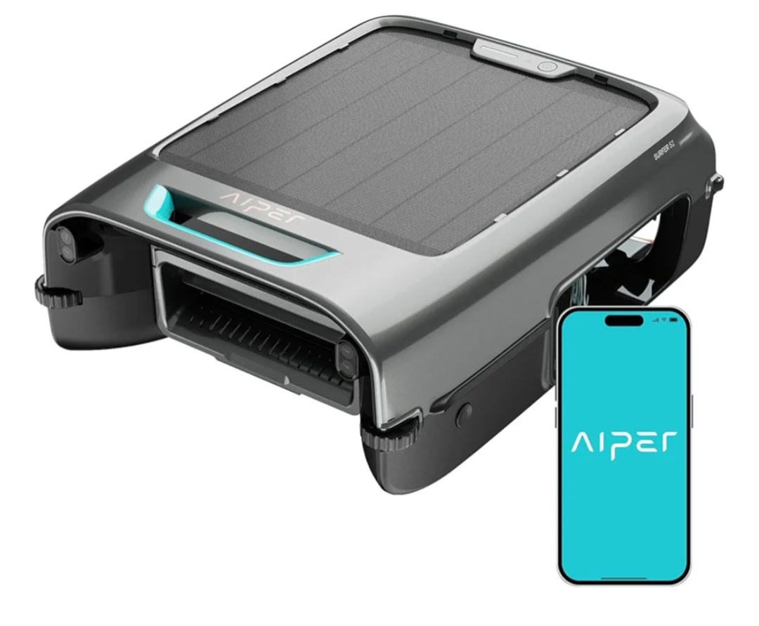 A smart solar-powered pool skimmer robot designed to automatically clean the surface of your pool. It removes leaves, dust, and insects while offering full control through a mobile app for easy operation and scheduling.