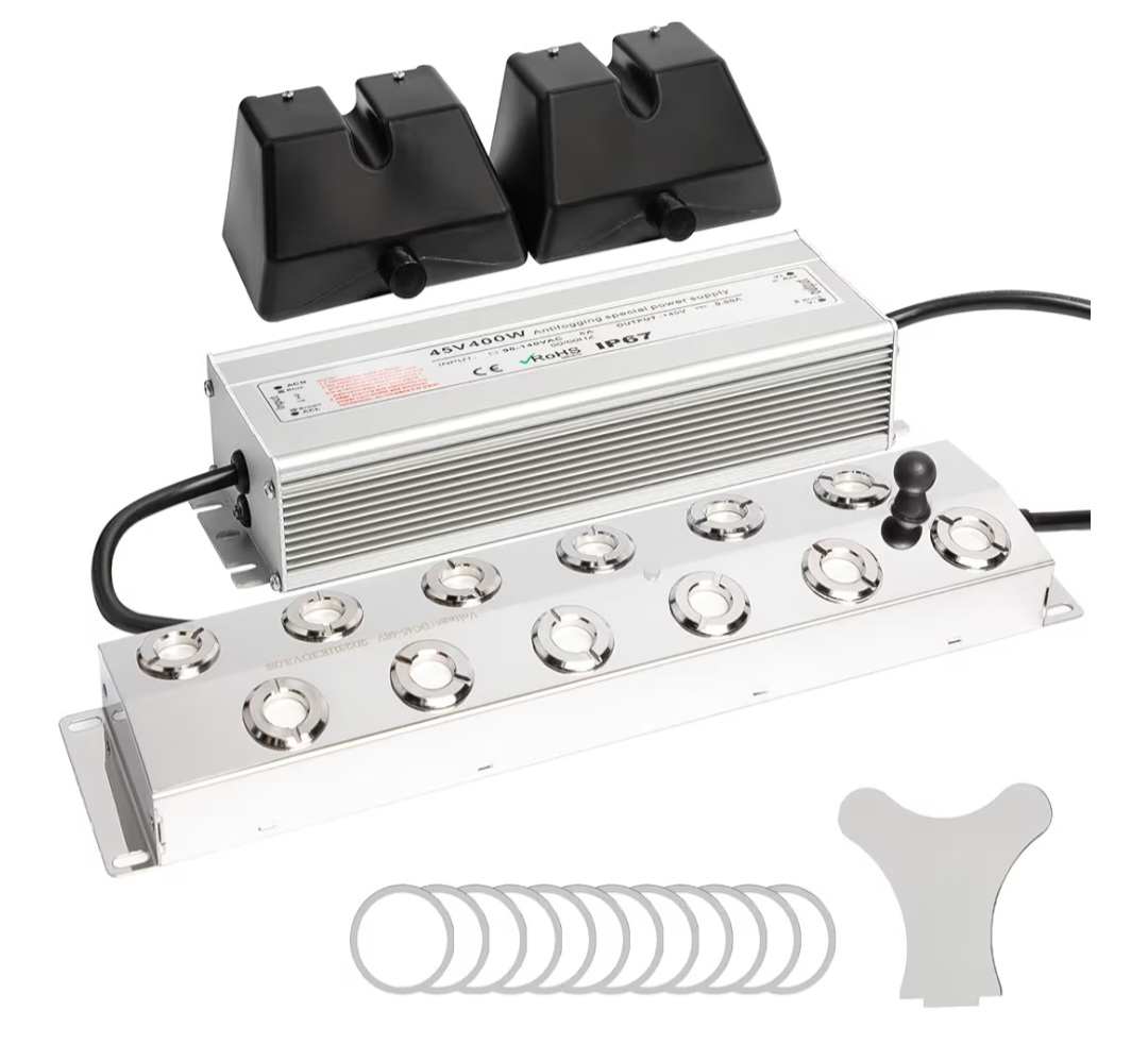 A high-performance 12-head ultrasonic fogger designed to produce dense mist quickly for ponds, greenhouses, and decorative setups. With a powerful 400W output and up to 9000ml/h mist capacity, it delivers an impressive fog effect while enhancing humidity levels.