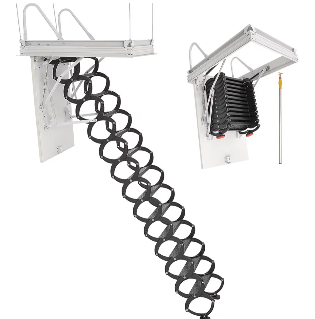 The VEVOR retractable attic ladder is a heavy-duty ceiling-mounted ladder designed for easy and safe access to attic, loft, or roof spaces. It features a strong steel structure and a hydraulic support system that allows smooth, controlled opening and closing, making it practical and secure for daily use.