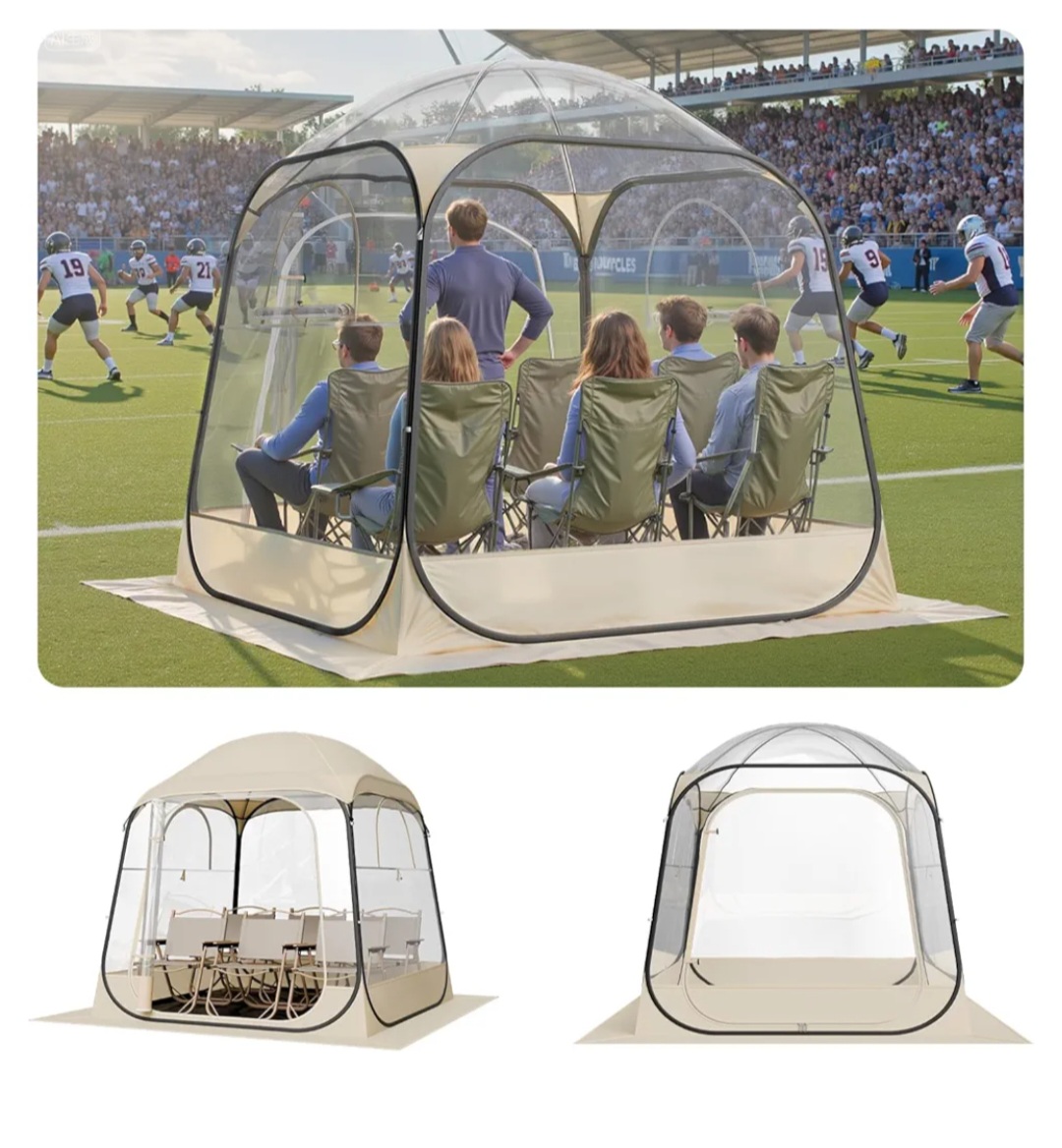 The VEVOR Upgraded Clear Bubble Tent is a large outdoor dome tent designed to comfortably accommodate 4 to 8 people. With a spacious 10 × 9.2 ft size and an easy pop-up assembly, it sets up quickly without complicated tools. Its transparent design provides a wide panoramic view, making it perfect for outdoor activities, family gatherings, events, parades, and backyard use, while offering protection from moderate weather conditions.